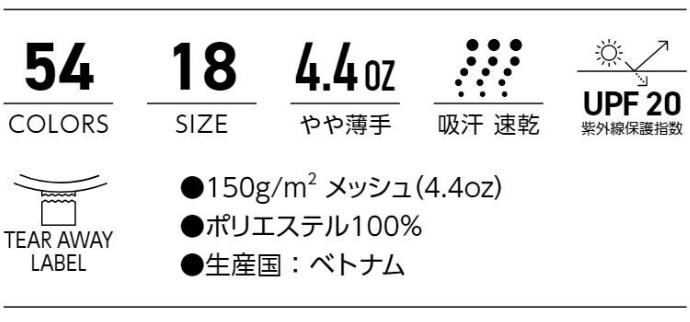 生地ウェイト:4.4オンス メッシュ